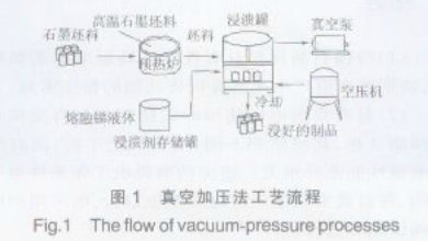 浸漬的本質(zhì)是液態(tài)物質(zhì)在一定的溫度和壓力下向具有毛細(xì)管結(jié)構(gòu)的固體滲透。碳石墨制品的孔隙率約 15%~30%,必須經(jīng)過浸漬某種浸漬劑填充。浸漬劑本身的特性決定浸漬的難度并對(duì)碳石墨復(fù)合新材料的機(jī)械物理性能產(chǎn)生重大影響,因此選用浸漬劑的原則是:滿足新材料的機(jī)械物理性能的前提下盡可能的采用低成本的浸漬劑和浸漬工藝。