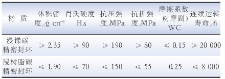 表 1 碳精密封環(huán)的材質(zhì)性能及壽命對(duì)比